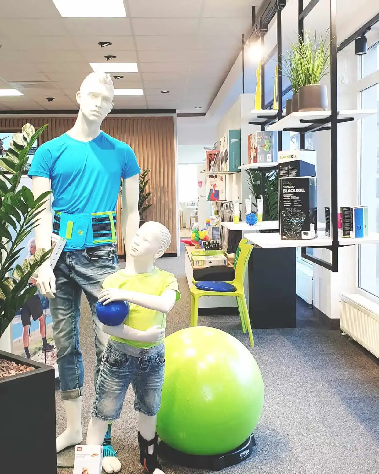 Vor allem die Größe einer Fachhandelsfläche hinterlässt einen nachhaltigen Eindruck beim Kunden. Oder bereits viel früher, noch vor dem Eintritt in ein Sanitätshaus, wenn es dem Planer gelungen ist, den Kunden einen Blick durch das Schaufenster in eine Kabine erhaschen zu lassen. Das Shoppingerlebnis beginnt somit sehr früh und findet stationär berets vor der eigentlichen Ladenfläche statt. Hier gibt es Show-Potenzial hoch drei, um Fachkompetenz zu zeigen, z. B. durch Dekorations-Frauenbeine mit Kompressionsstrümpfen, ausgestellte Einlagen, die wahrnehmbar werden, und eine modern gekleidete Figurenfamilie, die mit Bandagen ausgestattet ist.