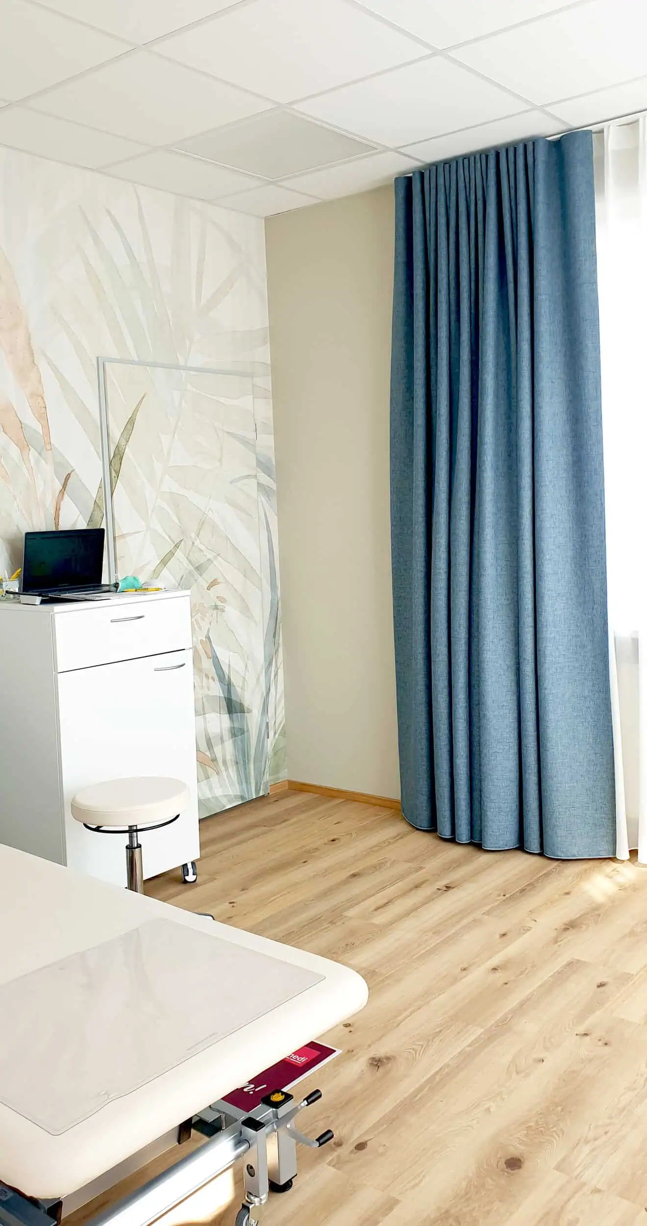 In der Kompressionstherapie, bereits vom Eingang aus über die Ladenfläche durch das große Sichtfenster in einer Kabine einsehbar, kann der Kunde sachkundig vermessen werden. Eine dritte Anprobe sorgt für die Möglichkeit einer manuellen Messmethodik durch viel Raum und hygienische Vorkehrungen. In dieser Kabine können ebenso Kinder versorgt werden, da die Eltern bequem mit in der Kabine verweilen können. Ein Display für Waren lässt sich individuell ausstatten, entsprechend des Designs der Verkaufsfläche.