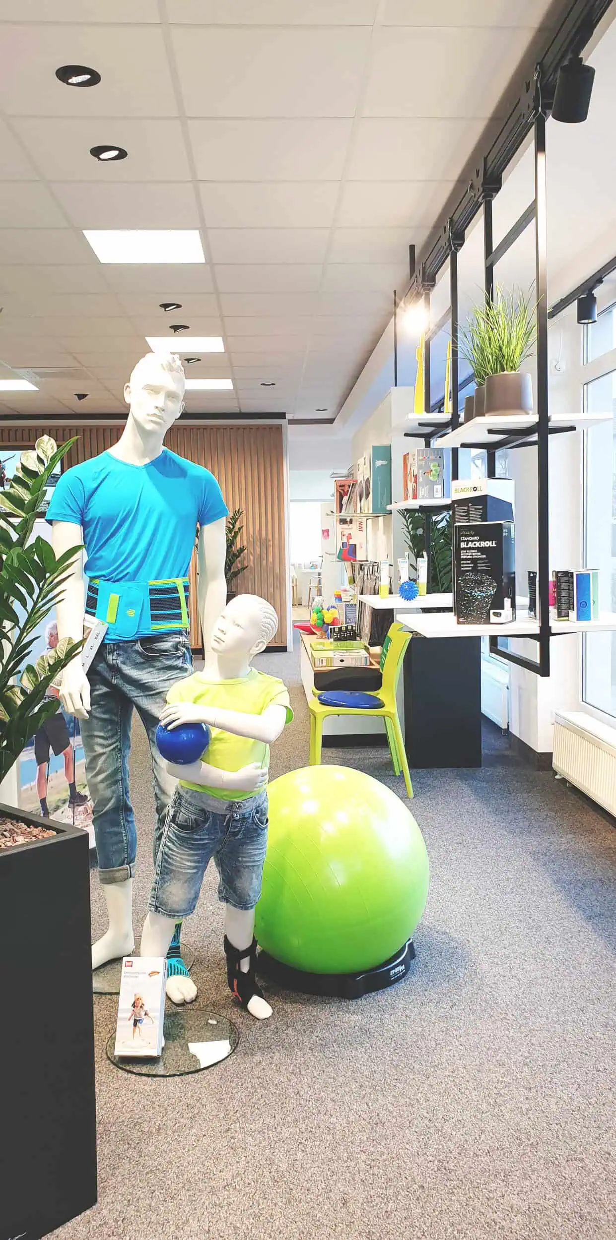 Vor allem die Größe einer Fachhandelsfläche hinterlässt einen nachhaltigen Eindruck beim Kunden. Oder bereits viel früher, noch vor dem Eintritt in ein Sanitätshaus, wenn es dem Planer gelungen ist, den Kunden einen Blick durch das Schaufenster in eine Kabine erhaschen zu lassen. Das Shoppingerlebnis beginnt somit sehr früh und findet stationär berets vor der eigentlichen Ladenfläche statt. Hier gibt es Show-Potenzial hoch drei, um Fachkompetenz zu zeigen, z. B. durch Dekorations-Frauenbeine mit Kompressionsstrümpfen, ausgestellte Einlagen, die wahrnehmbar werden, und eine modern gekleidete Figurenfamilie, die mit Bandagen ausgestattet ist.